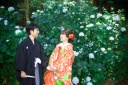 新緑の中、色鮮やかな色打掛が映え、とても華やかです!