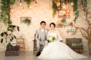 レンガ調の壁と緑を背景に、電球の光を活かしてお撮りしたこのお写真は、まるでおしゃれな隠れ家みたい!