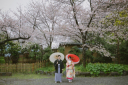 仲良くお二人で一つの傘に!少し照れている様子が可愛いです・・♡
