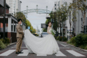 ご新婦様は白無垢から色打掛にお色直し♪黄色いイチョウの木の下でパシャリ!