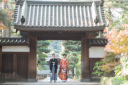 手を繋いでラブラブショット♡イチョウがさらに素敵なお写真に変えてくれますね♪
