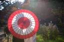 赤い和傘で仲良くあいあい傘*微笑ましいお写真ですね!