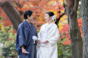 ご新郎様が番傘を持ちおふたりで相合い傘でお散歩。お話ししながらニコニコと歩くお姿に仲の良さが伝わってきますね