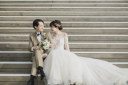 窓際でブーケを見つめるご新婦様と後ろからそっと優しく見つめるご新郎様。素敵な雰囲気に包まれています。