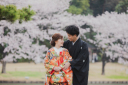 手を繋いで仲良く振り向くショット。撮影お疲れ様でした。末長くお幸せに・・