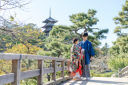 大桟橋に停泊中のロイヤルウイングを背に楽しそうにお喋りするおふたり。タイミングが合えば客船と一緒に撮影できるのも大桟橋での撮影の魅力の一つです。