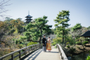 三溪園では欠かせない三重塔とのお写真♪和装の素晴らしさをより感じますね。こちらの橋の上での撮影は三溪園での撮影ならぜひ撮っていただきたいスポットです♪