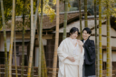 三溪園の歴史ある建物と和装の雰囲気がぴったりですね♡ 新婦様の淡いお着物と新郎様の黒紋付がよりお写真をカチッと引き締めます!