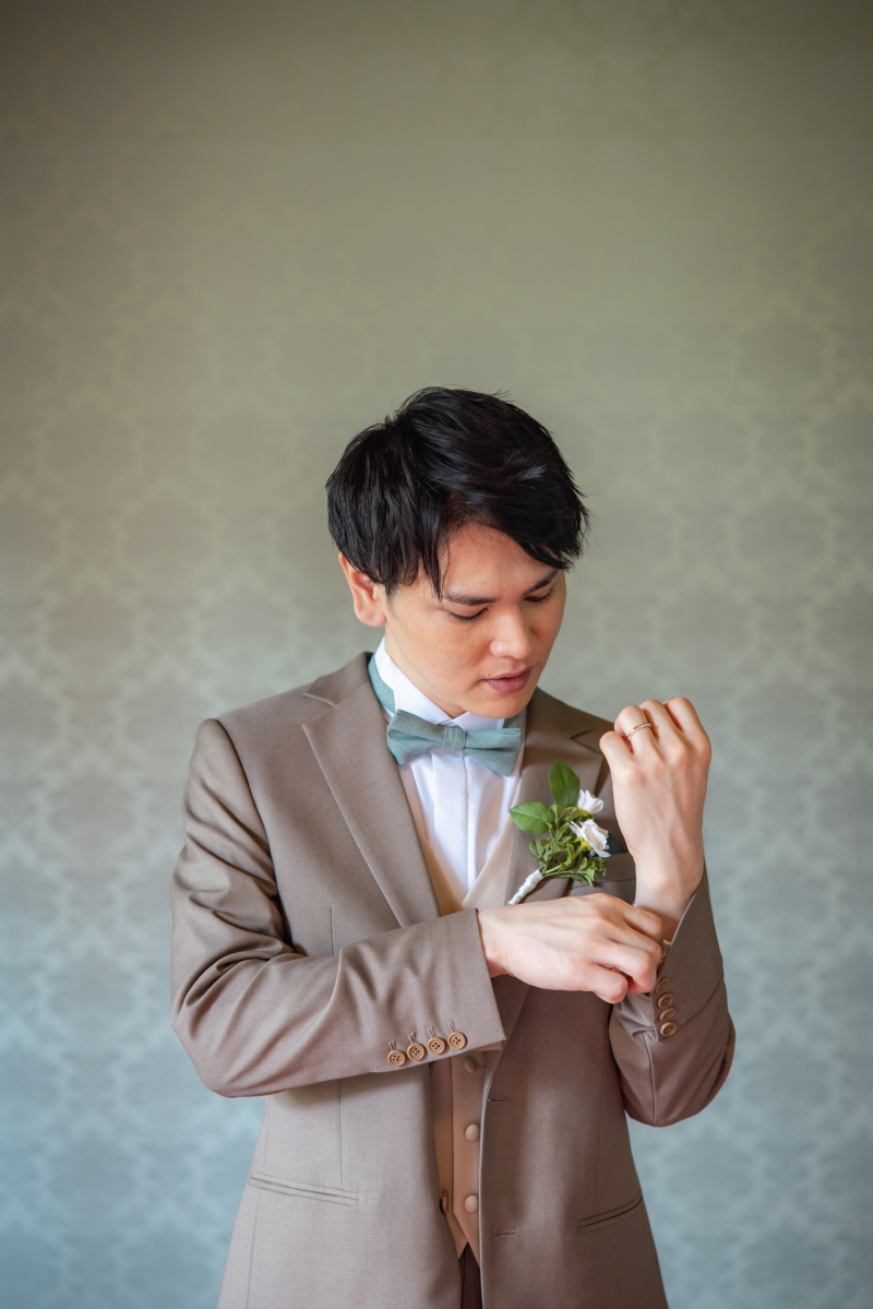 ウェディングシーンでは、新郎新婦の父親が着ているイメージが強くなっていますが、もちろん新郎も着用できます。チャペルやホテルなど、格式高い場所で前撮りしたい方におすすめですよ。
