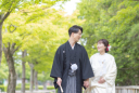 きらきらと 雪が舞う中でのご撮影。お二人のお着物のコーディネートが彩りを添えてくれます*