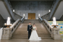 ドレスを広げての階段ショットです。クラシカルで重厚感ある階段でかっこいいお写真を撮影。