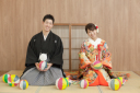「夫」「妻」の文字の書かれた扇子が特徴的な一枚です。