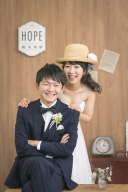 自然な光の中での、お二人らしい仲の良さが滲み出るワンショット。