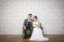 全身でのお写真^^池にも綺麗に映っておりとても幻想的な一枚です。周りが緑なのでお二人が映えますね♡