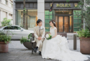 仲良く抱き合うお二人。噴水の雰囲気も大人っぽく華麗ですね♪