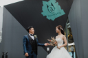 ご新郎様のエスコート*かっこいいポーズもばっちり決めてくださるお二人!