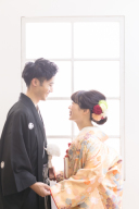 和装アイテムの番傘を使用して、ナチュラルなイメージのスタジオで撮影♡番傘の色味がとても綺麗。