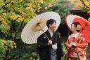 お二人が微笑んでいる姿がとても綺麗ですね^^お着物のオレンジと紅葉の色がマッチしてます!