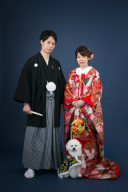 お二人の全身写真。ドレスタキシードとてもお似合いです**