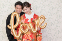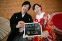ご挨拶用に素敵な笑顔と小物使いで、お二人らしい記念の一枚♪