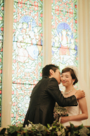手を取り合って、しっとりめのお写真です。光に包まれて撮影できる人気スポットです!