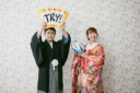 お2人で番傘を持ってご撮影!お二人の自然な笑顔が素敵です♡