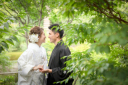 祭壇の前でフォーマルなお写真も♪キリッとしたご新郎様の表情と優しい笑顔のご新婦様♡