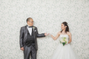 お二人がご用意されたアイテムを使ってパシャリ!手を繋いだラブラブなお二人が額縁の中に♡