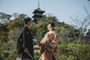 まずは和装から!三渓園で撮影スタートです*みつめあってにっこり笑顔素敵ですね