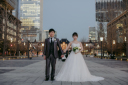 凛々しい立ち姿のご新郎様と、穏やかなご新婦様。お二人とも笑顔が素敵ですね
