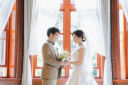 クラシカルなステンドグラスをバックにこんなお写真も*