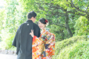竹林を背景にしてお二人が向き合っているお写真です☆