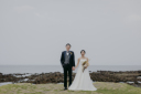 手前に見える美しいネモフィラの奥で手を握り合い額を合わせるお二人がとても幸せそうですね!