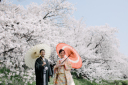 桜の柔らかい色合いに、お二人のお着物が綺麗です!!