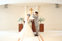 挙式前にチャペルで撮影を行います◎かっちりしたお写真からカジュアルなお写真まで、ここでもかなりの枚数を残していきます♡