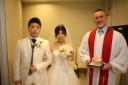 挙式終わりに牧師が新郎新婦様に挨拶に来られた際に撮った記念のお写真です。