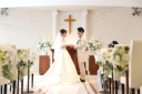 列席のご要望でお二人の後ろ姿を撮影するためにバージンロードを歩いていただきました。最後新郎様が振り向いてしっかりカメラ目線をいただきました