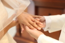 新郎様に優しく指輪をはめていただきました。手元のアップを取るために指輪の持ち方なども協力していただきました
