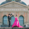 お二人が手を繋いでの振り返りショットもばっちりです!天井が高く、壮大な印象のお写真が残せます!
