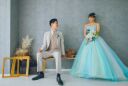 白無垢、ウエディングドレスとは雰囲気が変わり、カラードレスでのご撮影です。ご新郎様もジャケット、ベストを脱いでご撮影されました!