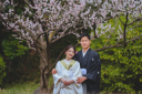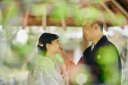 洗練された東京の街並みを背景に、絵葉書のような一枚。石造りでレトロ感ある橋がおふたりの洋装姿を引き立ててくれます。
