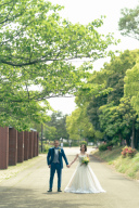 今回ご紹介するのは洋装ロケーションをお選びいただいたおふたり。みずみずしい緑がぴったりのウエディングドレスで撮影スタートです!