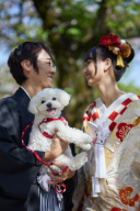 日が暮れた時間を狙って続いての撮影地へ。シンボリックな東京タワーと残す記念写真。洋装のシンプルな色合い引き立つダイナミックなショットです。