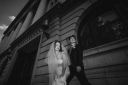 プロポーズの瞬間を、スタジオでゆっくりと再現。お互いを見つめ合う温かい眼差しが印象的です。シンプルな背景だからこそ、お二人の幸せな空気がより一層引き立ちます。
