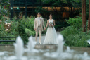 おふたり並んで公園ロケならでは自然の緑の中でのショットも。