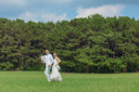 青空の下のでの撮影。空と芝生がとても綺麗に映ります!