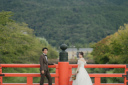 大原野神社の魅了の1つ「こいばし」。池泉回遊式庭園に広がる紅葉を楽しみながらお写真が残せます。