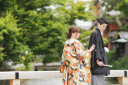 洋装にお着替えして京都森へ!目を合わせたら自然に笑顔になってしまうお二人です☺︎