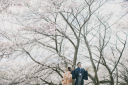 雨が降った後の水たまりに映るお二人。雨が降った後だからこそ、撮れる写真です。