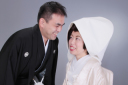 「寿(ことほぎ)」の一文字が入った白の和傘がお似合いです。スタジオ撮影で夢を広げちゃってください!